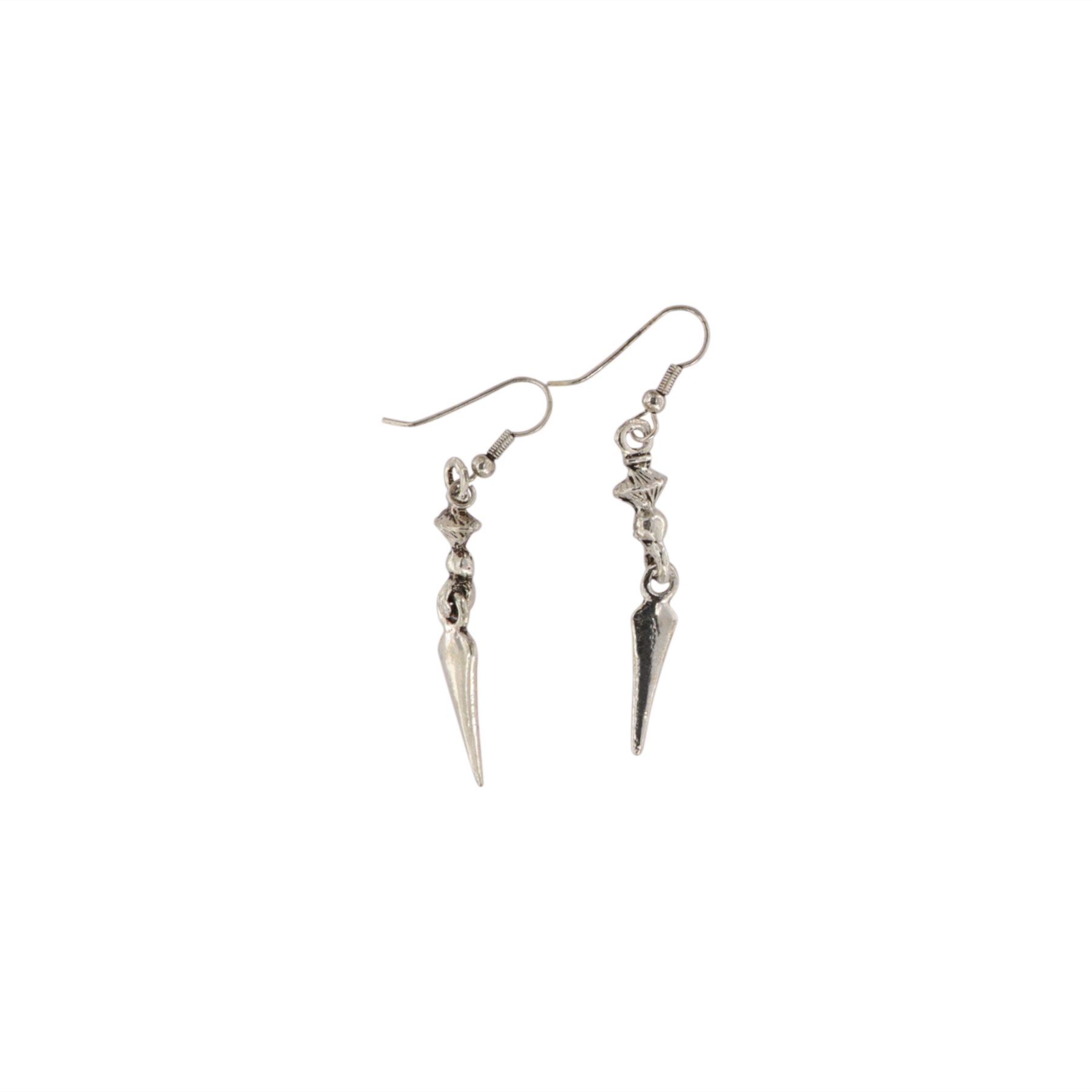Disse stilfulde hængeøreringe er lavet i forsølvet og forgyldt messing og har et slankt, spidst vedhæng, der giver et råt og moderne udtryk. Det aflange design skaber en smuk bevægelse og gør øreringene til et markant, men elegant statement.