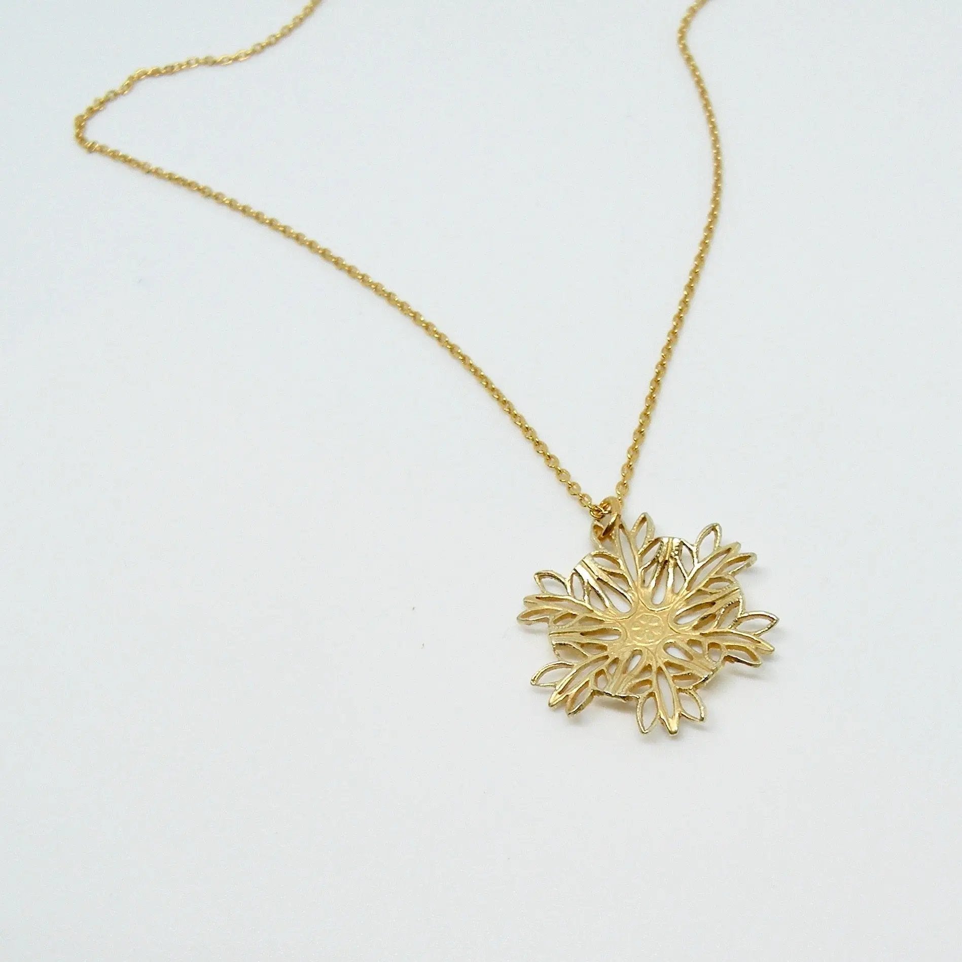 Vedhæng udformet som et snefnug i sterlingsølv forgyldt med 18 karat guld.