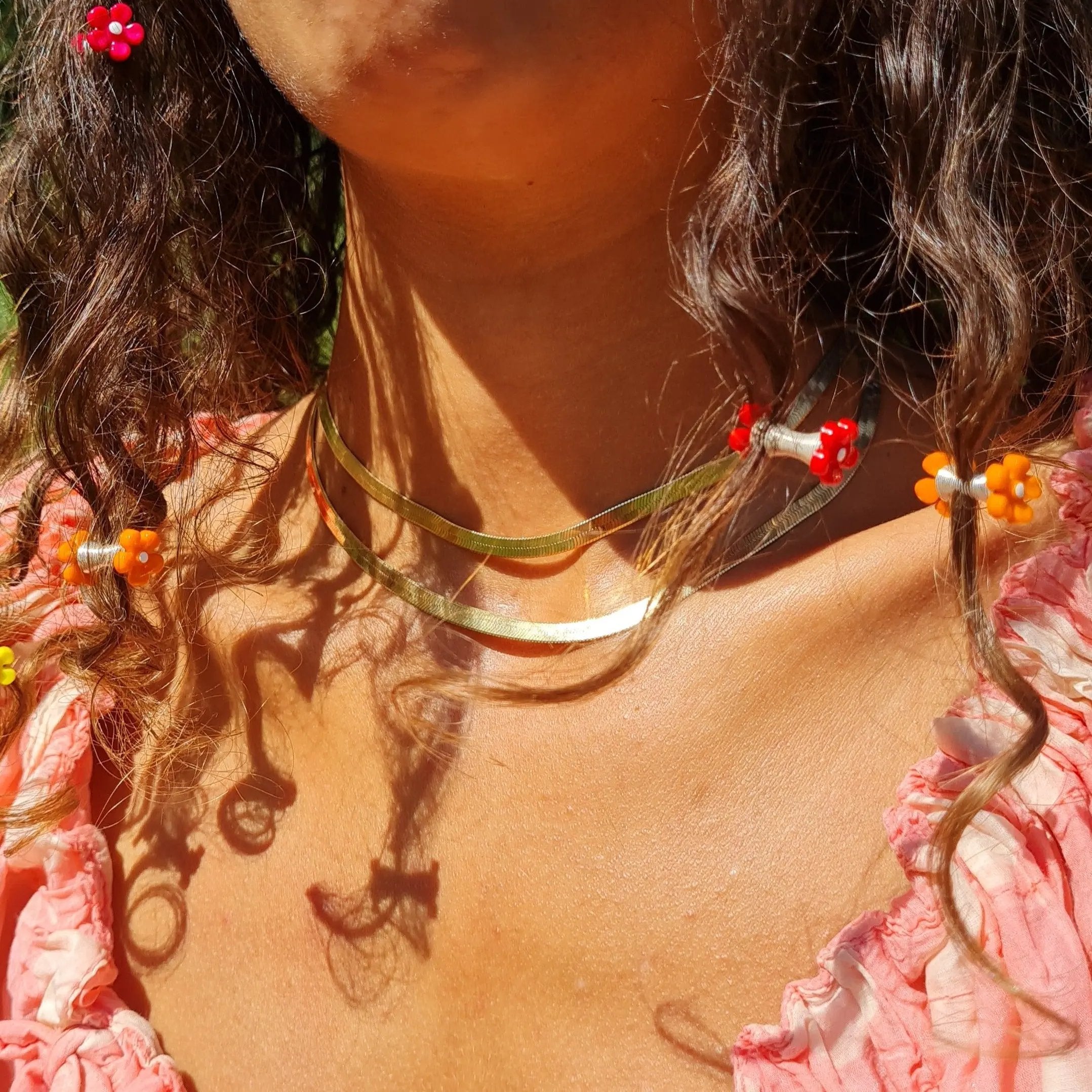 Bred flad snake halskæde af certificeret genbrugssølv og Fairtrade guld. Halskæden er af sterlingsølv forgyldt med 18 karat guldbelægning. Denne halskæde sidder flottest tæt ved halsen.