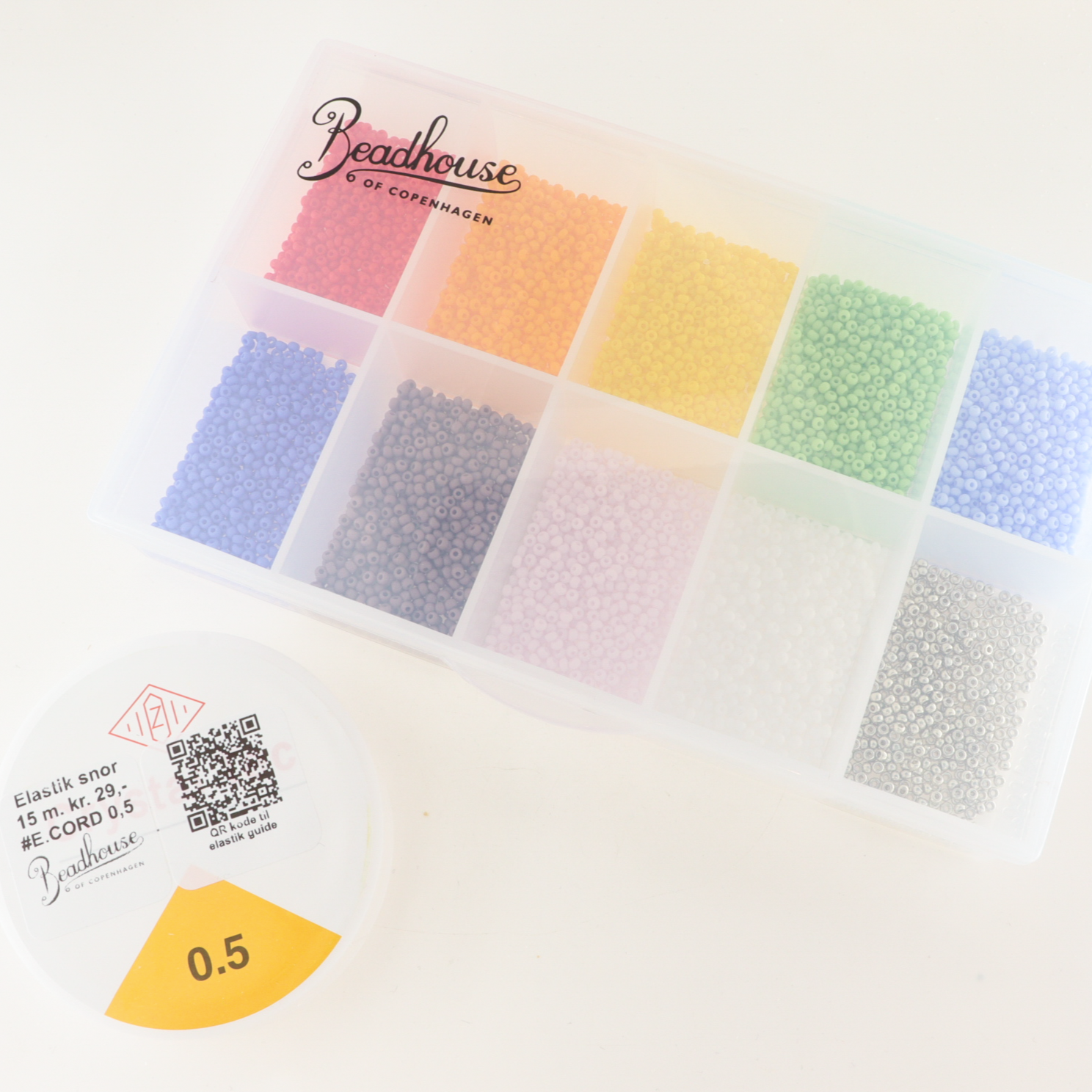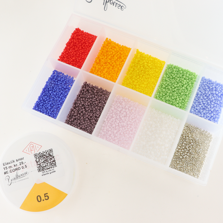 Diy kit, glasperler str. 10/0, sølv, med perler der holder farven