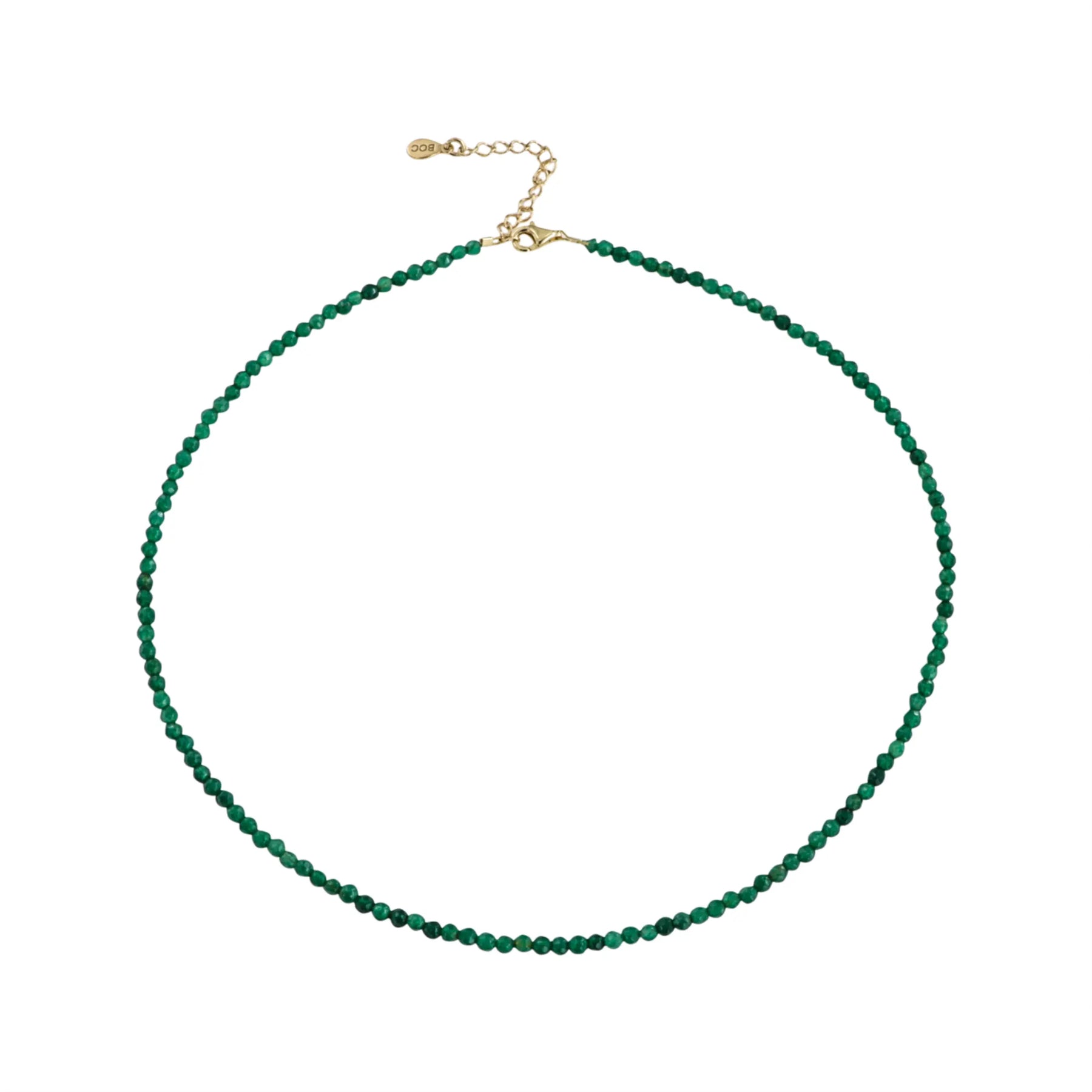 Delikat halskæde i grøn kvarts, bestående af små, runde facetterede perler, der fanger lyset smukt og giver et elegant, let spil. Den støvede grønne farve giver et roligt og naturligt udtryk, som passer perfekt til både hverdag og fest.