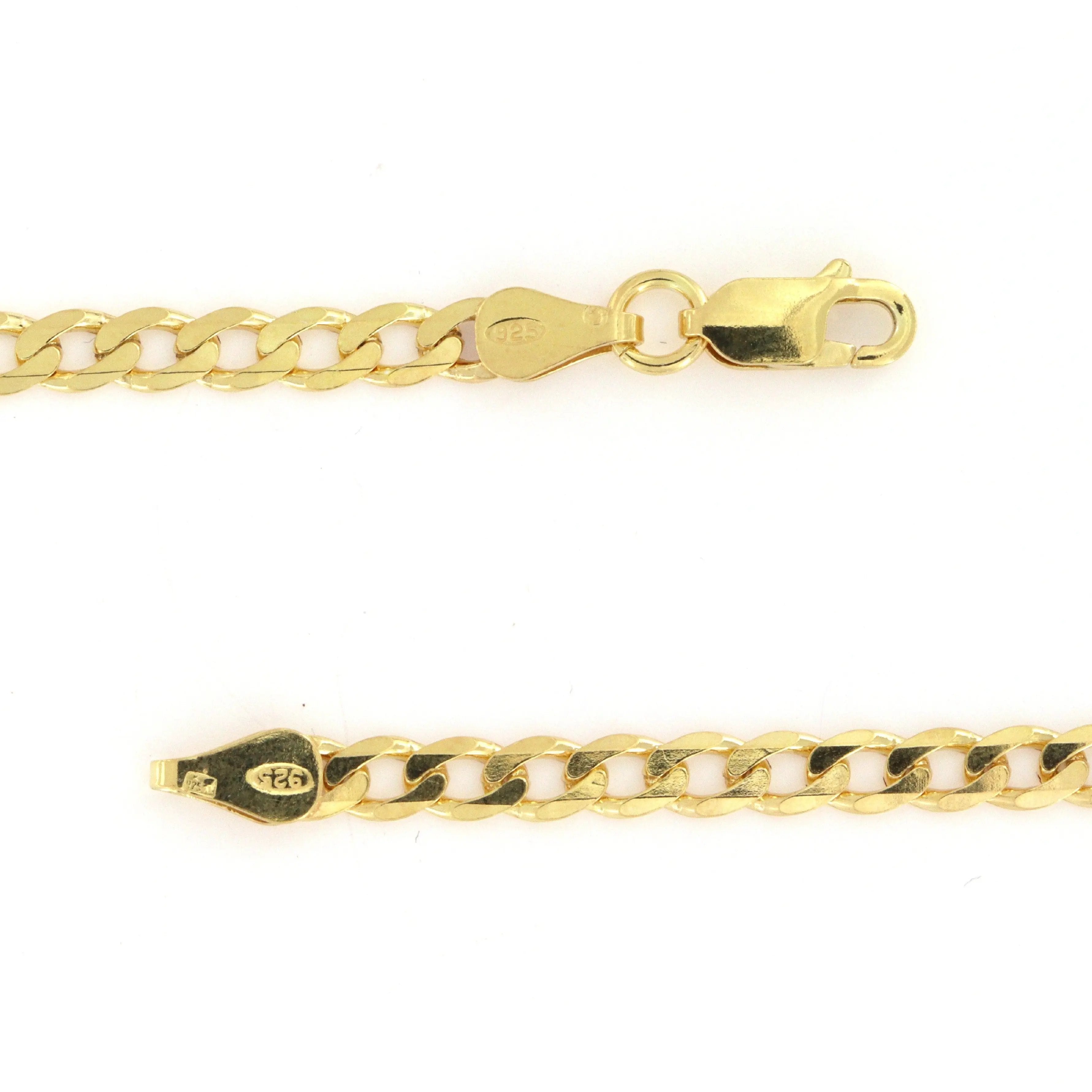 Halskæde, panser facet kæde flad, forgyldt sterlingsølv, 45 cm/4,5 mm bred
