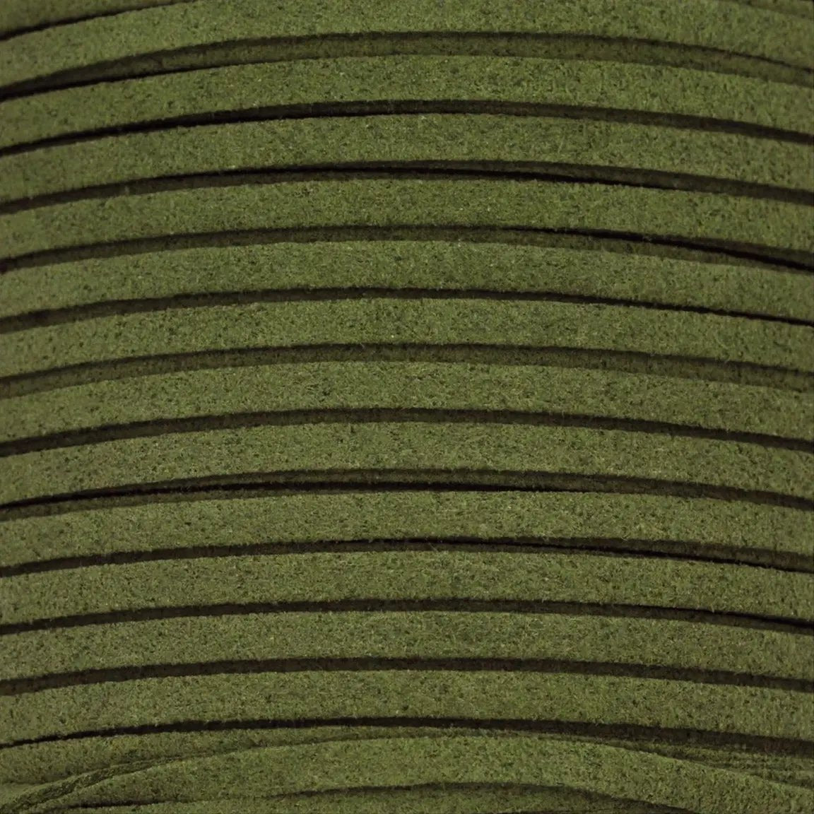 Snor, mørk olivengrøn, ruskind, 3 mm x 1,5 m