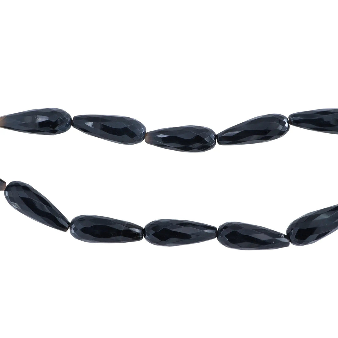 Smykkestensperler, string, onyx dråbe facetteret, 39 cm/12 x 30 mm