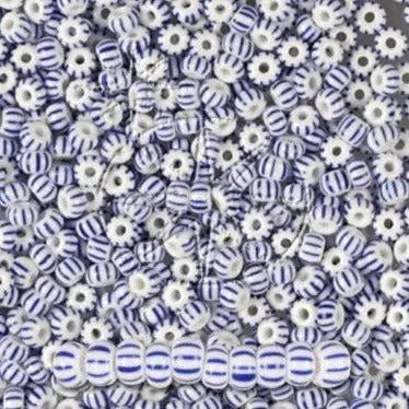 Stribede glasperler, preciosa, hvid/blå tæt stribet, storkøb