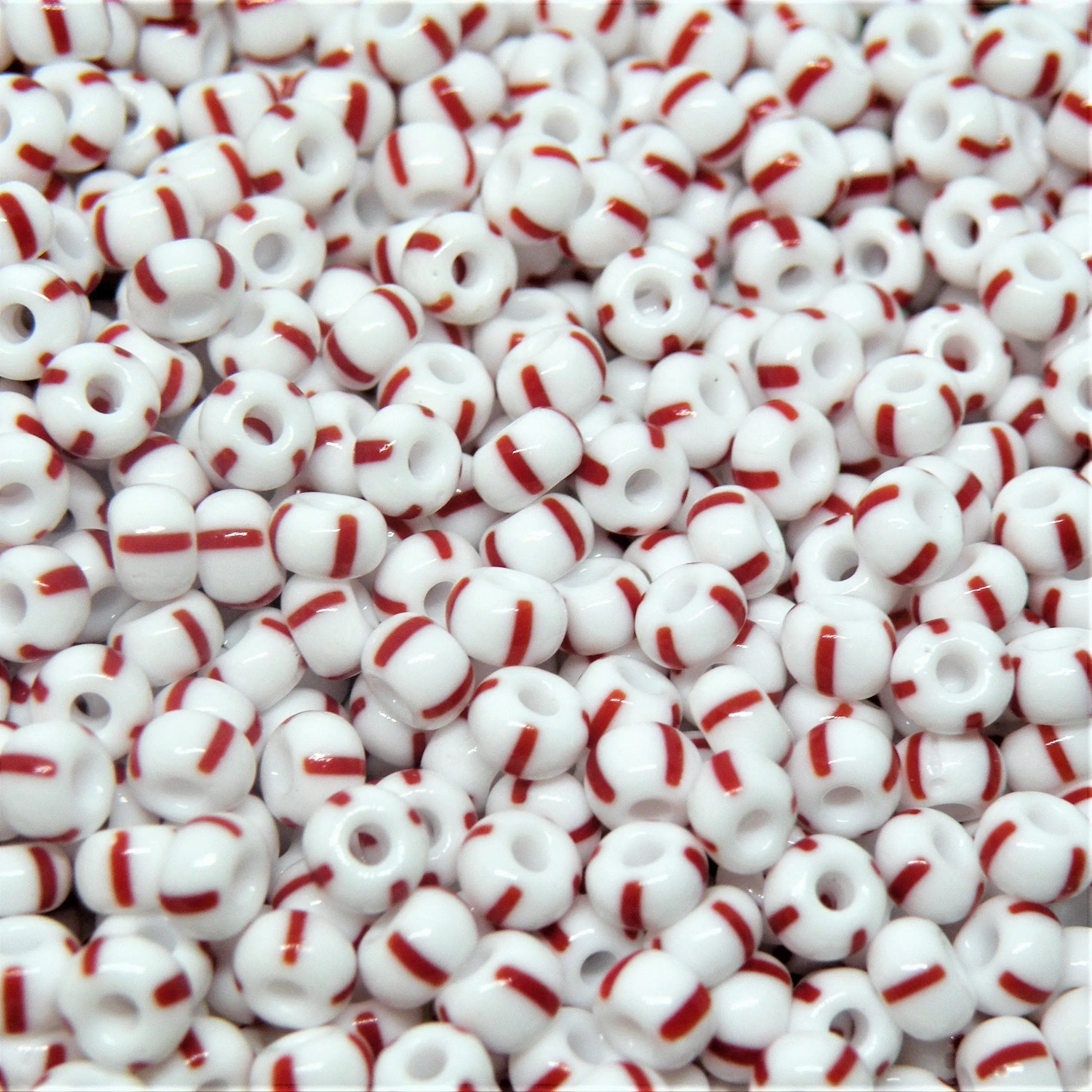 Stribede glasperler, preciosa, hvid/4 røde striber, storkøb